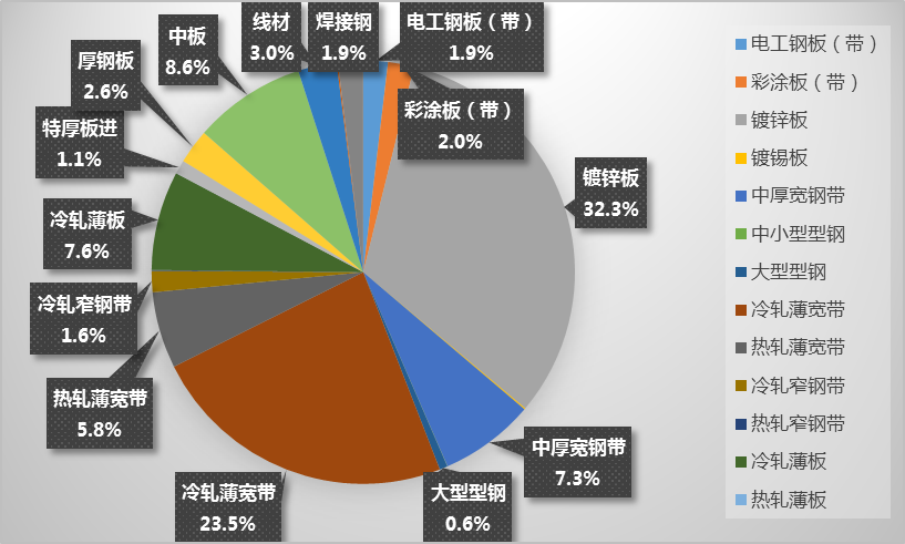 图1 我国自韩国进口钢材品种及占比